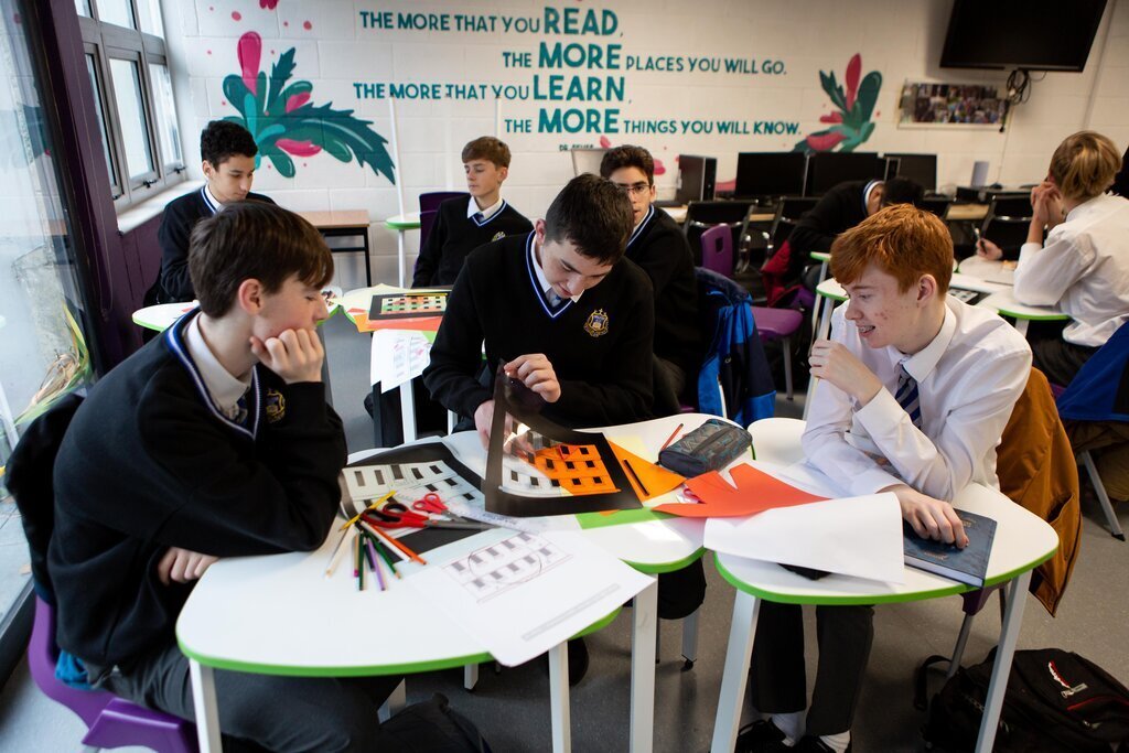 Made as part of Winter Lights 2019, this encore artwork was made by transition year students in Synge Street CBS with artist Steve MacDevitt. Inspired by the students' visits to the Hugh Lane Gallery and some of the artists they encountered there, like Harry Clark and Séan Scully, their stunning artwork is lighting up the gallery once again this year.